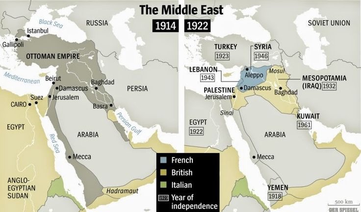 Во время Первой мировой войны Турция потерпела поражение и была изгнана с Ближнего Востока. Территория была разделена между британцами, французами и итальянцами. Англия получает мандат от Лиги Наций, давший ей право на управление территорией Израиля до 14-го мая 1948 года.